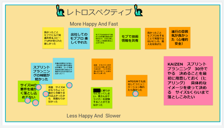 全て出し切ったら、メンバー全員であまり良くなかったことの中から次回のスプリントで改善したい課題を一つに絞ります。